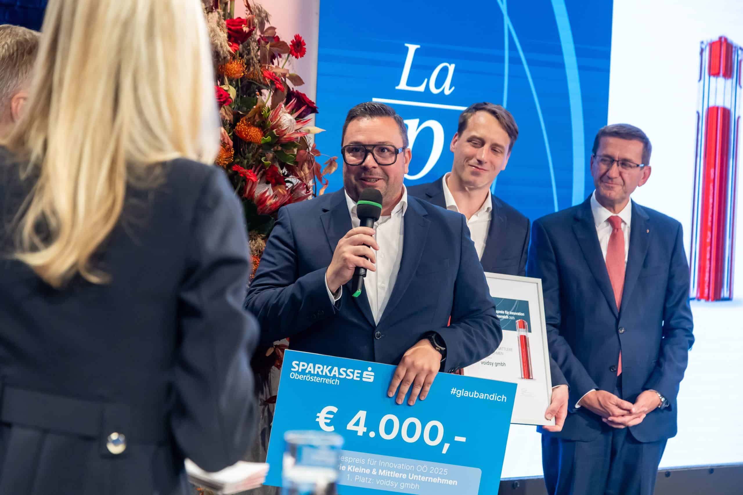 Wir haben Grund zum Feiern: Die voidsy gmbh wurde mit dem Landespreis für Innovation 2025 in der Kategorie „Kleine und mittlere Unternehmen“ mit Gold ausgezeichnet! Insgesamt gab es 83 Einreichungen, davon 43 in unserer Kategorie – umso größer ist die Freude, dass unsere Entwicklung „voidsy 3D V-ROX: Effizienz trifft Innovation – Der intelligente Blick ins Bauteilinnere“ die Jury überzeugen konnte.